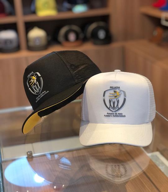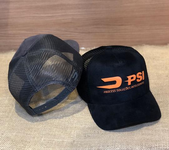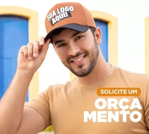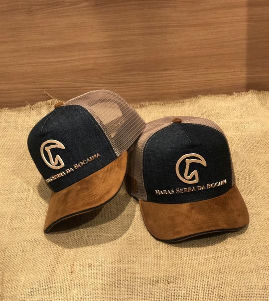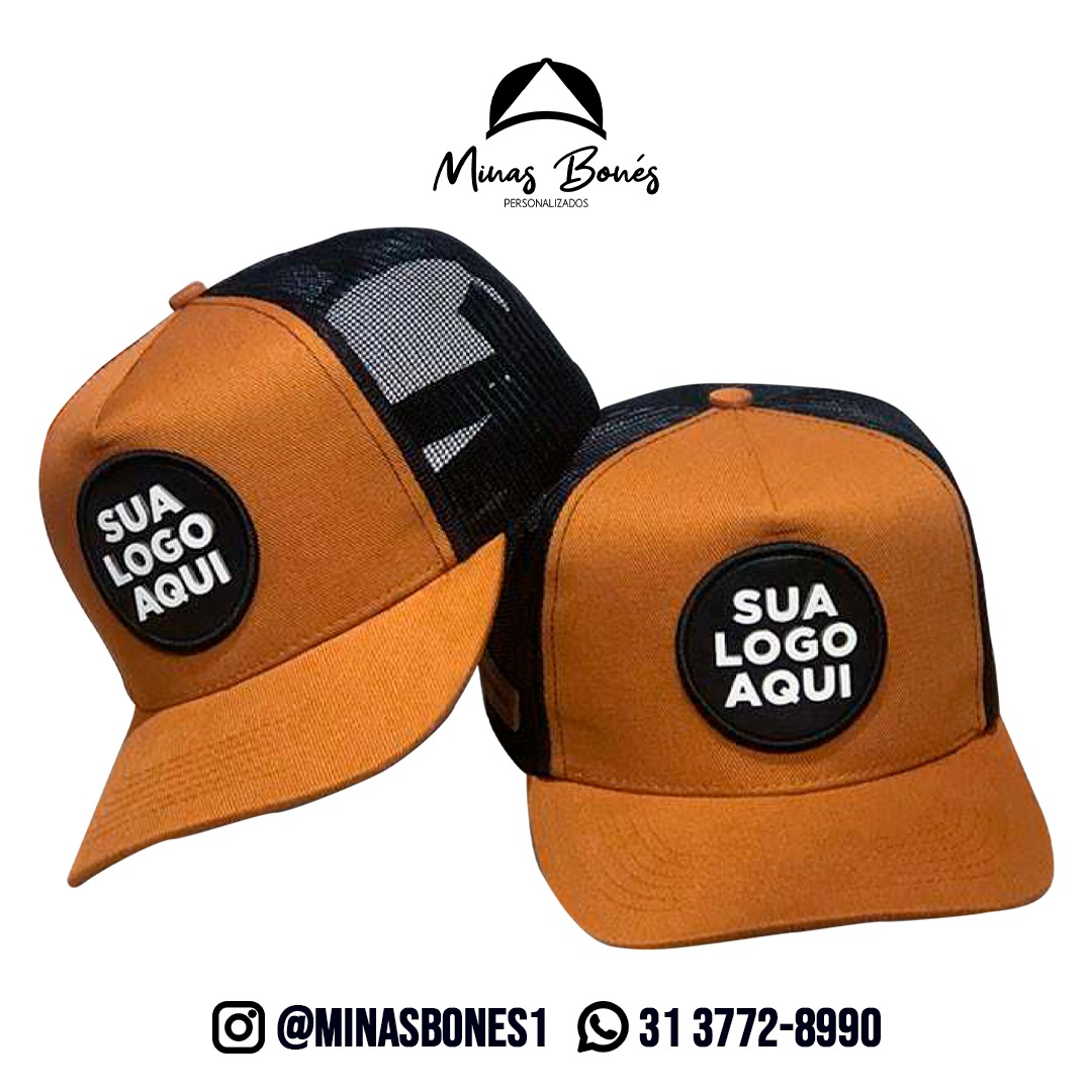 Camurça ou Brim Super Cap com 2 personalizações 1 Bordado ou Silk 3D frontal + 1 Bordado ou TAG 3D ou TAG couro gravado a laser até 5x5 cm.